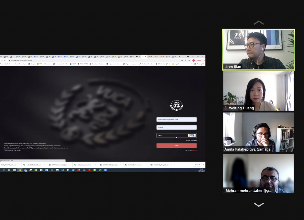 会议中,卞立人先生向工程师们详细介绍了英国新概念交易所VUCA Board的理念及业务,就行业和形势与工程师们展开讨论与深入对话。并表示,目前国内市场火热,前景广阔,而英国又是百年世界金融大国,具备开放的市场环境、完善的市场机制、发达的商业和创新文化等优势在英国建立技术团队,能更好地服务于国内中小企业,而这也将成为衔接国内市场和英国市场的桥梁,实现中英之间宣传、招股、商业的互通,助力中小企业蓬勃发展。